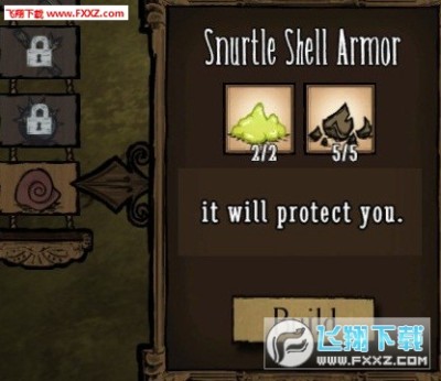 饥荒 蜗牛盔甲简单合成MOD;蜗牛盔甲是可以装备的护甲,从蜗牛龟身上掉落。它拥有 1050 耐久度并且在平常装备时可以吸收 60% 的物理伤害。当玩家选择躲在壳里时(在物品栏中用右键点选装备中的蜗牛盔甲),则可以吸收 100% 的物理伤害。