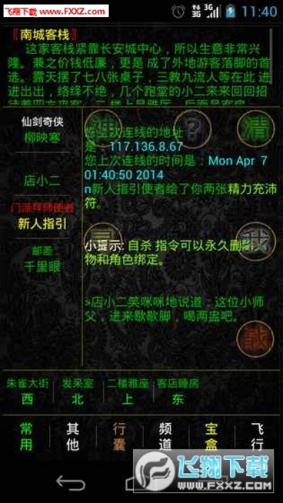 聊天 – chat (显示输入栏) 西天取经 – obstacles 大闹天宫 – dntg 十大高手 – top 法宝 – unique all 在线玩家 – who 特别 – localcmds 看自己 – look player 快捷按键 – showshortcuts (切换是否显示快捷按键) 讯息开关 – switchinfo (暂停讯息接收,在大量讯息时方便点击控制) 退出 – quit