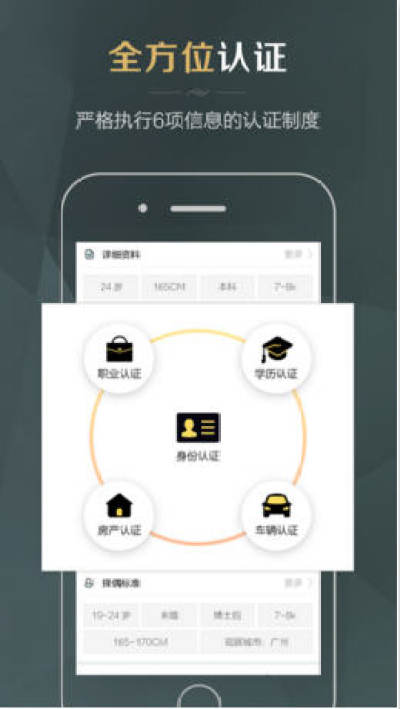 【实名制认证】多重审核。实名身份认证,人工审核微信号、相册,严格地审核职业、学历、车辆和房产认证,保证真人真照片真背景资料,严肃婚恋交友拒绝欺骗。