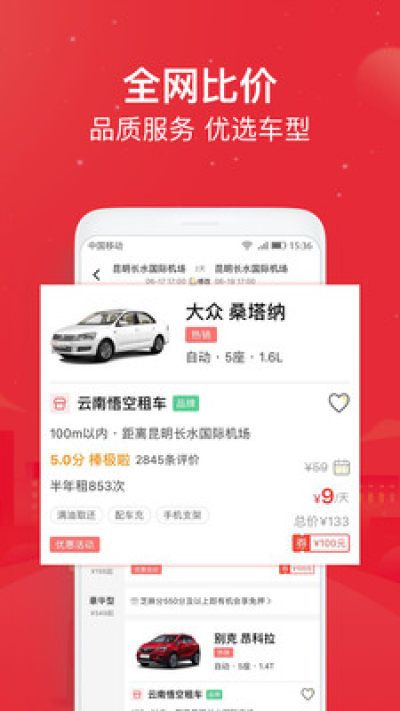 【超低价格】租车服务涵盖了多家租车公司平台比价,提供多家租车品牌供您选择,让您享受更低的价格,出行更有保障。