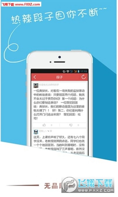 无品段子让你从此告别讲笑话而冷场的尴尬,成为活跃气氛的笑话高手!还有更多爆笑图片、雷人囧事、恶搞网文、奇闻趣事……戳爆你的笑点!让你捧腹大笑!每日编辑推荐更新海量数据,让你网罗天下新鲜事!放松心情,轻松解压,居家旅行、开心必备!绝对是你等公交等地铁打发无聊时光不二之选!错过这个店就没那个店小二了!赶紧点下载按钮吧!更多欢乐等着你哟~