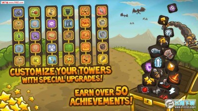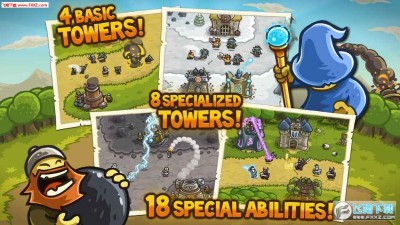 游戏不像以往的塔防小游戏那样枯燥,具体表现在建造兵营召唤士兵防御,修复木屋招募精灵等新设计,操作简单,使你很快上手。人类的王国领域在面对魔兽军团的大肆进攻时将会更加强大,玩家能够建造更完善的防御系统来抵御这些魔兽军团的疯狂进攻。你要消灭敌人赚到钱,才能修筑自己的攻击建筑。炮塔跟怪的品种很多,可购买升级,还有百科、成就等。