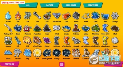 这个游戏,一开始你不需要太多的时间来理解它你从6个贴纸开始:四个基本元素(火,水,空气,土),工具,和任何[野生]贴纸可能出现的贴纸,这个游戏考验的完全是你的脑洞能力,没有想不到只有你不去想,任何两张贴纸都可以组合,系统所组合出来的东西也是千奇百怪,是一款很有意思的小游戏,你会在欢声笑语中去组合它们~