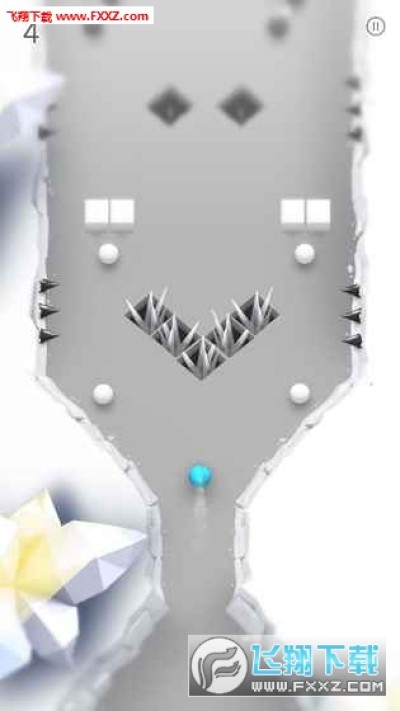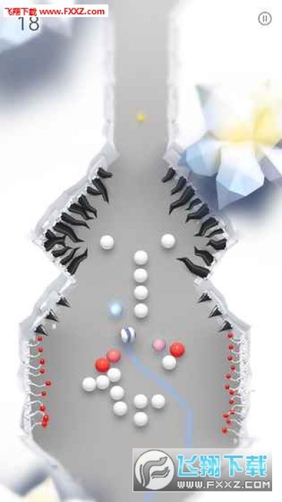 玩家需要在游戏里控制一个蓝色小球躲避黑球、冰锥、炸弹等障碍的攻击,不断滚动前进。
