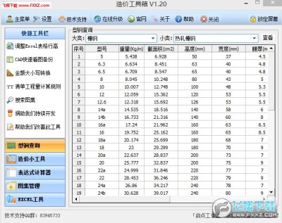 1.目前造价工具箱有五大类功能,分别为型钢查询、造价小工具、表达式计算、图集管理、Excel表格等工具;