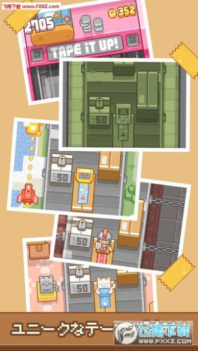 《上升履带(Tape it Up!)》的画面采用2D竖版屏幕呈现,并以时下流行的卡通像素画风进行渲染,使得游戏有种十分复古的感觉。不过本作虽然是像素画面,但却没有一般像素游戏那么粗糙,使用各种卡通元素所构成的运输履带看上去还是蛮精致个性的。此外,玩家在游戏中可以控制的物体也都是各种可爱的小物件,比如小兔子、GAME BOY、章鱼、墨西哥卷等等,还是很有意思的。