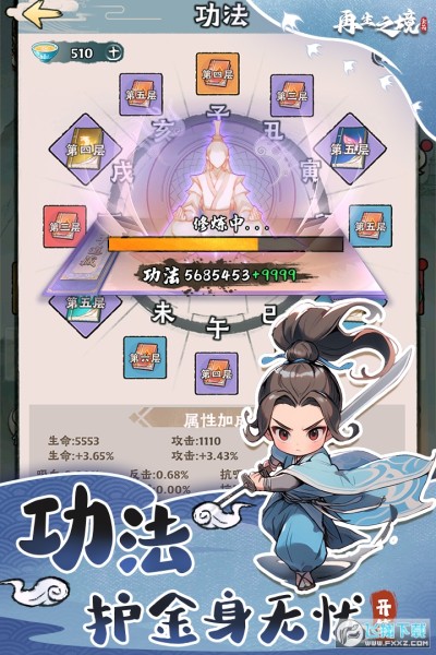 《再生之境》是一款Q版放置类仙侠风RPG游戏,以「炼器」为核心。在游戏中作为一个初出茅庐的宗门弟子,通过开箱炼器、升级装备、斗法斩妖、捕捉仙宠、寻仙访友等方式不断成长,并击败对手最终成长为实力强大的无上仙尊。