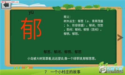 练习语文生字听力,同时配有对应的图片,本册每一个生字都配有对应的句子、组词、组句和朗读。