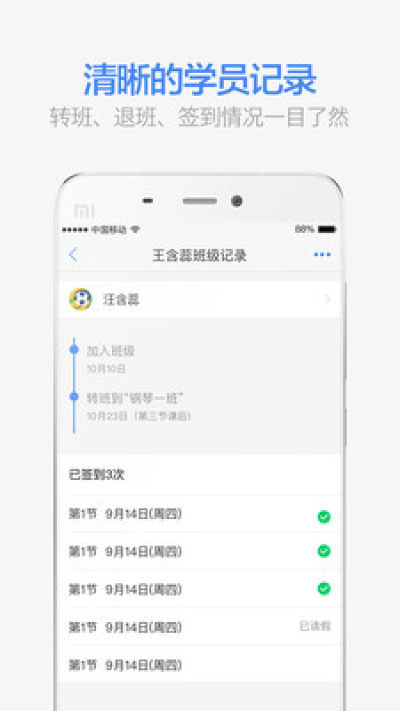 - 学员记录:转班、退班情况一目了然