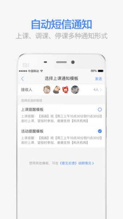 - 短信提醒:上课、停课、调课多种通知形式,可一键发送给学生