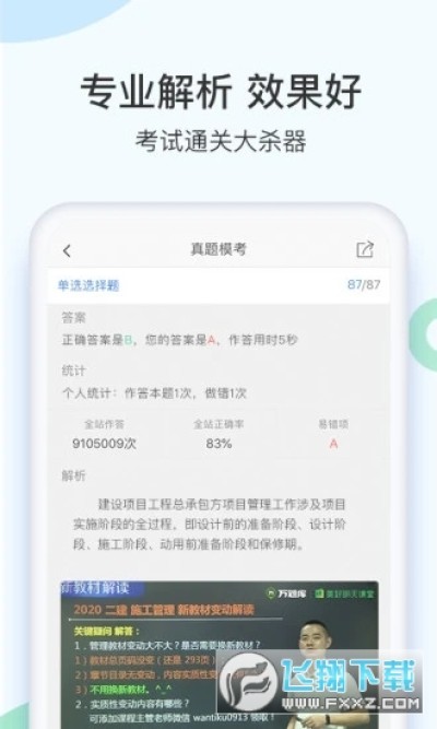 二建万题库为每一道试题录制了名师视频解析,看不懂答案文字解析完全没关系,二建顶级名师讲到你懂!即使你是0基础,我们也不愿让你感受到一丝学习的痛苦与压力,力图让你做对每一道题,顺利通过考试简直不在话下!