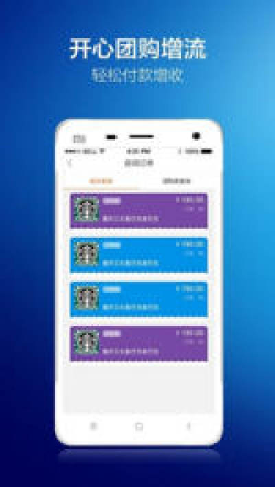 4、开心团购曾流 轻松付款增收 用户团购或消费券号,商家快速验证,直接扫码收款,用户便捷付款,店家轻松收款 增加客流,店家增收。