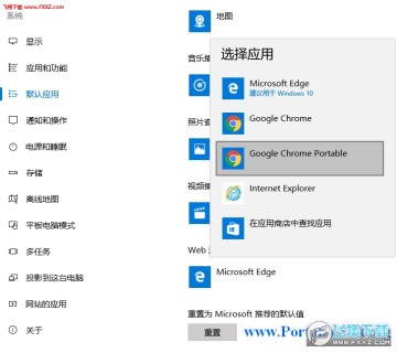 然后需要到 Windows 10「设置 > 系统 > 默认应用 > Web 浏览器」中选择 Google Chrome Portable 并做确认操作。
