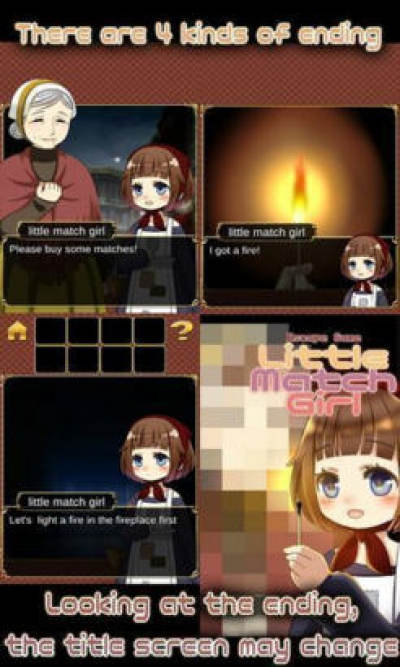 脱出游戏卖火柴的少女:由经典童话故事《卖火柴的小女孩》为蓝本打造的解谜手游,延续原作中的人物,玩家扮演十分悲剧的小女孩逃脱这个密室,胆大心细,思维逻辑强的你能够做到么?感兴趣的玩家,赶快下载试试吧!