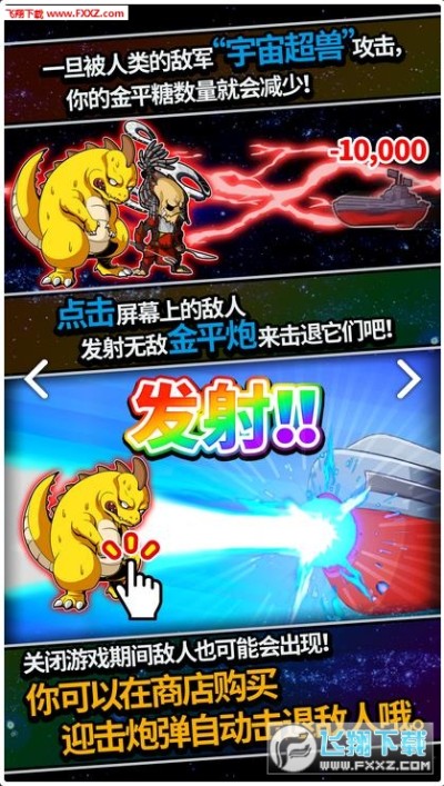 恋之宇宙战舰是一款休闲养成类的手机游戏。玩家在游戏中需要不断的收集金平糖,然后购买炮弹去攻击敌人,游戏剧情丰富,操作简单流畅,玩法有趣,而且游戏只有足够多的金平糖才可以开启游戏核心剧情哟!感兴趣的小伙伴们欢迎下载体验哦!
