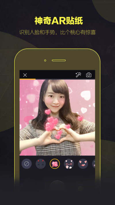 多种动态贴纸自动识别,完美融合你的面部,随心所欲拍出各种视频,妈妈再也不用担心你的道具不够用啦~
