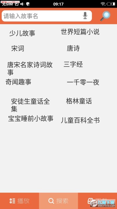 这款为宝宝打造的语音故事软件界面简单,很容易操作,想要听什么故事直接点播放就可以了。另外,还有一键搜索功能,世界短篇小说、少儿故事、唐诗宋词、格林童话等故事任你选择。