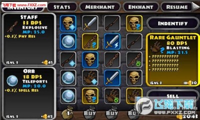 游戏很简单那,不会英文照样可以玩,游戏总共两件装备,找一件装备是bolt属性,和另外一件bolt和seeking属性的装备带上,bolt效果是增加一条魔法光束,seeking效果是自动攻击怪物,然后enchant把装备提升到橙色品质,reroll stats把装备强化到一定的等级,在stats选项卡里面加生命和魔法属性,这样就可以轻松过关了!!