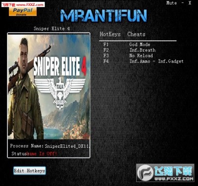 狙击精英4 v1.30五项修改器,这款修改器的功能分别为上帝模式、锁定心率、免装弹、无限专注等等超实用性的功能,非常强大,有需求的玩家朋友快来下载吧!