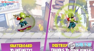 - 玩家要操纵小僵尸踏着滑板不断前进;