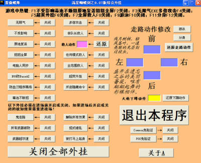 流星蝴蝶剑9.07作弊器按键说明: