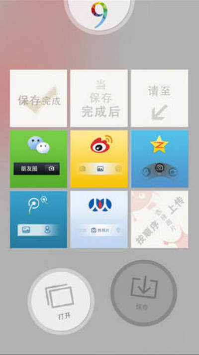 9Cut是一款把照片裁切成9块来上传后拼贴为1张大图的应用。用它你就可以告别只发布1张小缩略图而得到9张拼成的夺人眼球的震撼大图啦,实乃刷屏利器!