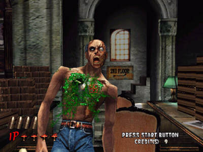 死亡之屋2是一款可以和“vr特警”一绝高低的动作射击作品,讲述主人公为拯救同伴与魔鬼、僵尸战斗的故事,玩法很经典,相信大家会喜欢,这已经是死亡之屋的第二部作品了。玩过《死亡之屋》的朋友应该还记得那种恐怖的滋味吧,PC版早在几年前就曾经出品过,而那时还采用仿3D的2D帖图技术来模仿3D效果,假如你现在再闹出来看的话肯定会觉得画面非常糟糕,这一切在《死亡之屋2》中将不再出现,而替代的将是非常完美的3D画面,这就意味着游戏将会有比前作更为出色的视觉享受和惊险剧情。