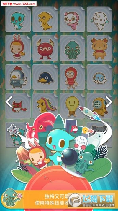 主角是各种萌物,小龙小羊小鸭小熊小章鱼应有尽有,每种角色有不同的球数直径和buff