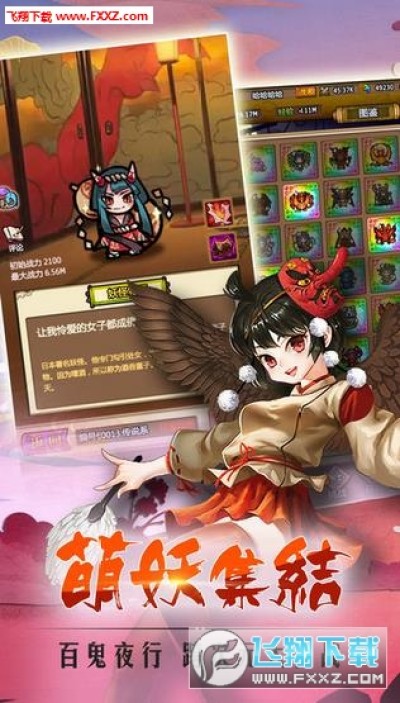 汇聚了来自日本传说中的妖怪、动漫明星、游戏名角等数百位经典形象,丰富创新的养成系统,趣味十足的冒险体验,百种妖怪组合,让你脑洞大开的离奇玩法,更有20V20的百鬼夜行精彩大乱斗,带给你日式冒险挂机游戏的全新体验!