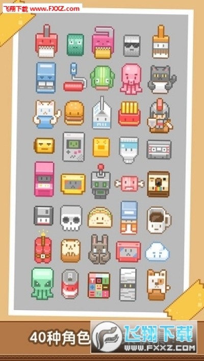 从勾起童年回忆的胶带到章鱼动物等等多样化角色,等你来收集!超可爱的像素风格,用像素图打造的色彩鲜明世界!