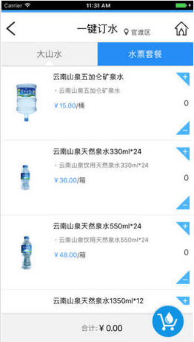 云南山泉iOS版为你提供一键订水服务,让你体验不一样的购水服务。5月1-5月31日期间使用云南山泉app订水,还可以随机抽奖活动,奖品多多。云南山泉iOS版支持支付版。微信。现金等多种支付方式,不仅购水方便还有奖品,赶紧下载购买饮用水吧。