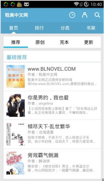 耽美小说中文网是一款崇尚官能美浪漫追求文学的小说APP,适用于安卓多种用户,耽美小说是一种新型的漫画小说类型,收录当下最热最新的耽美阅读,喜欢这款小说的朋友们快来下载吧但亲们看书时间不宜过长哦!