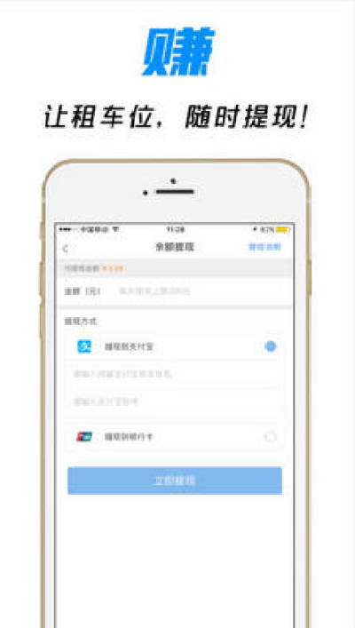 【让车赚钱】“车位出让”和“车位出租”均有“定价”功能,获得收益随时提现