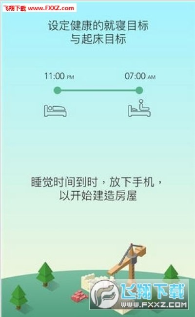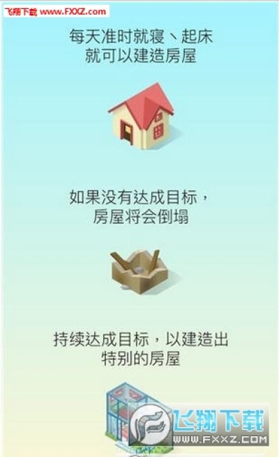 2) 每天在就寝目标时间前开启 app,开始建造房屋
