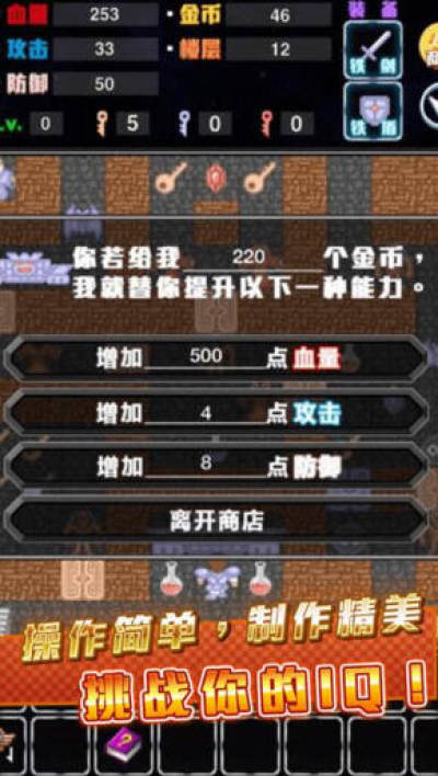 《魔塔50层》是经典游戏魔塔的手机复刻版,保留了原版游戏中的各种经典设定,玩家必须规划好自己的每一步,才能够顺利的走到终点,打败最后的魔塔大魔王。