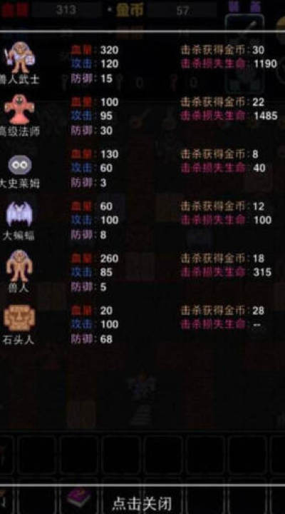 玩这个游戏需要动很多脑筋,任何一个轻率的选择都可能导致游戏的失败。该游戏有属性攻击、防御、生命、金币。对怪物的伤害次数计算公式,是敌人的生命/(自己的攻击-敌人的防御) ;而伤害的数目计算是怪物伤害次数*(敌人的攻击-自己的防御)。