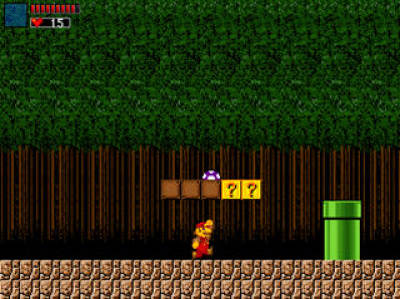 游戏中的主角为马里奥,其身体为恒定状态,取消了变大变小的设定,改为HP制。武器引入恶魔城的副武器系统,以心数为限制。游戏中不乏隐藏要素,主要是一些绿蘑菇、管道内的隐藏区域和分支路线。值得注意的是:游戏中管道内的食人草变得更加客观化了,即使你人站在上面,它也会伸出来搞你,同样地,即使它缩回管道内了,用武器也还是可以打掉的。