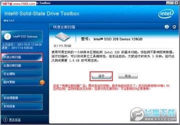 第一步:安装好Intel SSD ToolBox后,打开该工具后选择要优化的SSD硬盘,然后点击快速诊断按钮