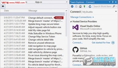 在任意提供商(包括 GitHub)托管的 Git 存储库中管理您的源代码。 或者,使用 Visual Studio Team Services 管理您整个项目的代码、Bug 和工作项。