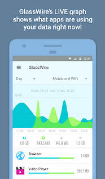 GlassWire手机版是一款非常小众的的手机流量监控软件,不过还是非常好用的,小编给大家带来的是GlassWire安卓版,通过简单的界面来向你展示你的流量使用情况,是一款非常好用的适合普通用户的网络防火墙工具,需要的快来下载吧!