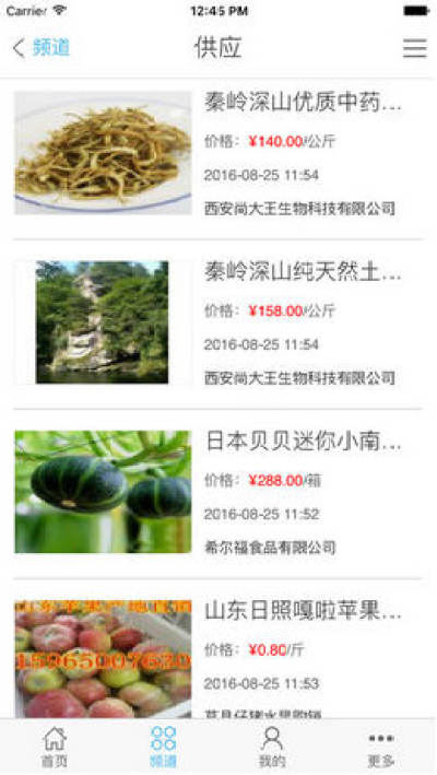 5.通过点击“详细信息”了解产地、供应量、价格信息;