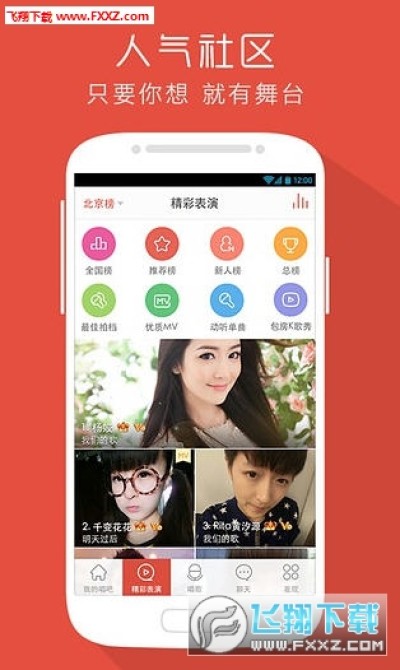 - 全国榜、地区榜、附近歌王、单曲排行、合唱排行,这里的舞台足够大