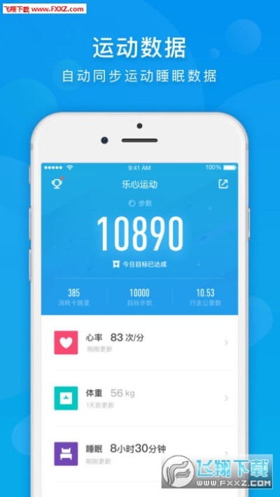 可记录查看运动健康数据,同步乐心全线智能设备数据,包括步数、睡眠、卡路里消耗、体重、体质、运动等方面;