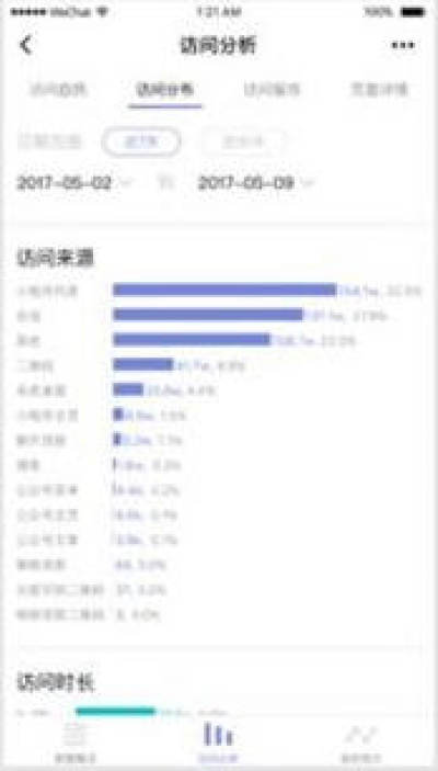 只要进入“小程序数据助手”,就可以方便地查询到你绑定的小程序的用户数据概况、访问分析和实时统计等数据,授权完毕,老板、同事或者其他有需求的微信用户都可以使用。