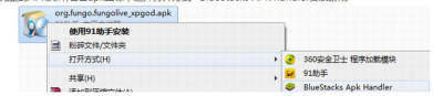 3.下载完整的APK文件,右击apk图标,选择打开方式--BlueStacks APK handler安装游戏