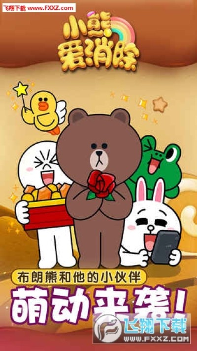 获得LINE正版授权,游戏内满是呆萌可爱的布朗熊和他的小伙伴们,俏皮的可妮兔、温暖的莎莉还有更多LINE角色聚集在《小熊爱消除》中,喜欢他们就来游戏中与他们见面吧!