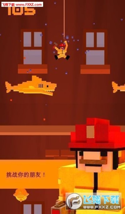游戏把《荒诞钓鱼》的玩法以及《天天过马路》的 3D 像素风格结合在一起。玩家所控制的小人将被一条绳子吊着,而游戏的目的就是让小人不断地往下沉降,途中还要躲避开来往的障碍物,不然小人就会瞬间爆炸。