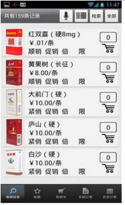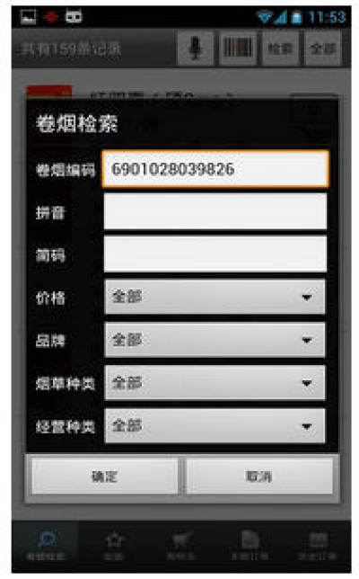 2.零售户在订烟时,可以使用条码扫描将需要订的烟品、快速,简单的加入购物车,无需进行复杂的拼音,价格范围,品牌等检索方式;