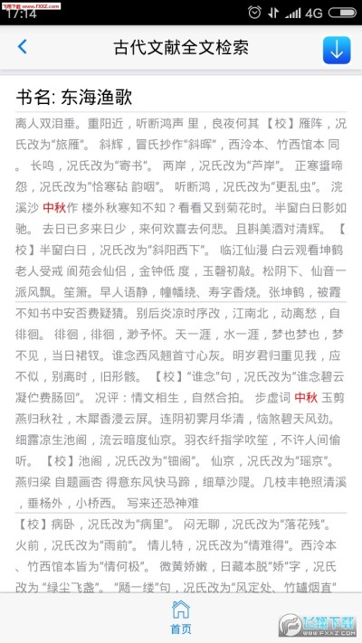 本APP程序即是基于网络(出处:殆知阁)收集的四库全书而建立的全文检索系统,可作文献参考。内容分经、史、子、集四部,下设佛经、医学、儒家经典、史籍、诸子百科、易经、艺术、诗歌、道家经典及文人文集,共16000种20万卷,集古代文献之大成。