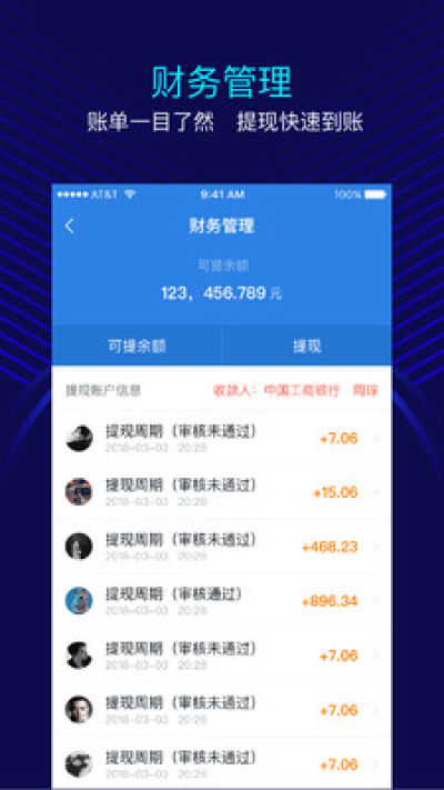 查看账户余额、余额提现、管理提现账户信息、查看提现记录、查看余额明细等